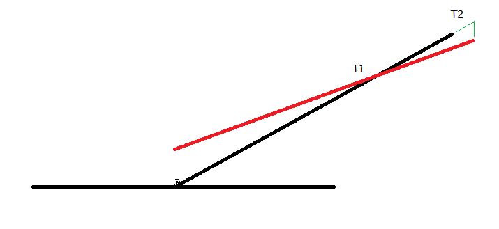 Cuando tiras con guardia baja, con los cañones en el punto de salida del plato, ves salir el plato y sigues su trayectoria. Si fallas el primer tiro, el propio swing hace que sigas la misma trayectoria que lleva el plato. Es decir, no hay variaciones en cuando al movimiento (ver imagen 1, T1 y T2 serían los puntos de tiro 1 y tiro 2).