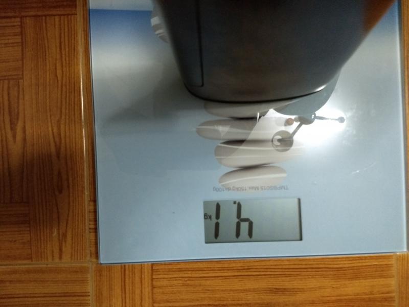 Ahora mismo la tengo cargada con todos los pesos que trae. Tan pronto pueda la pesaré y colgaré los resultados.