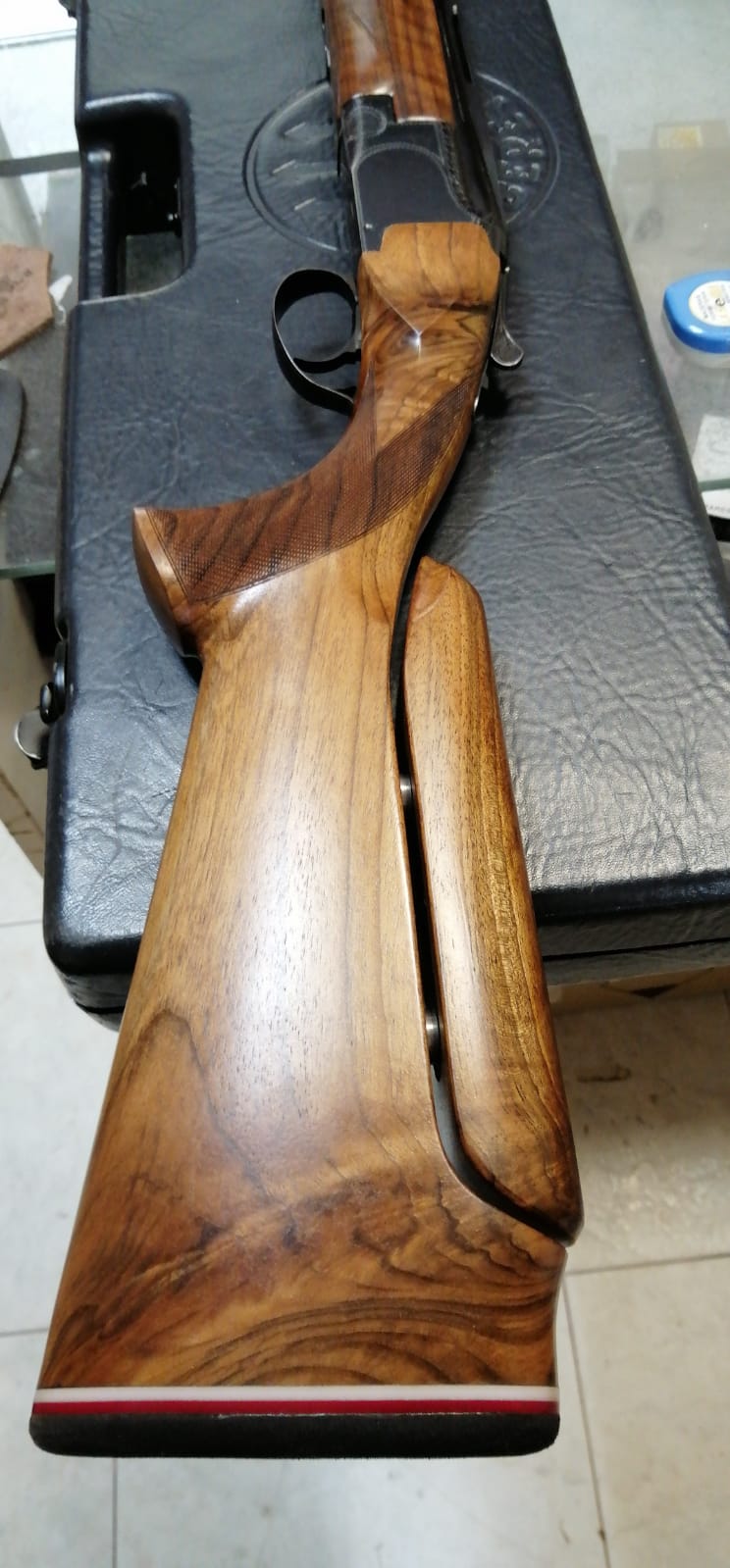 yo la tengo o mejor dicho tenia a mas de medio centímetro aunque no lo parezca en las fotos e puesto la cantonera gorda para encarar mas atrás e bajado un poco y centrado el lomo a ver que tal pero la verdad se me esta complicando por falta de nociones y experiencia la regulación acabe con el cuello super cargado y el hombro también y no del retroceso la verdad me estoy pensando en ir a un culatero o pillar una culata regulable y eso que acabo de comprar el arma aunque la opción de culata regulable por mi falta de experiencia podría ser un gran contra lo del culatero pues hacerme una fija Montecarlo a medida pero claro que culateros hay buenos por la zona de granada
