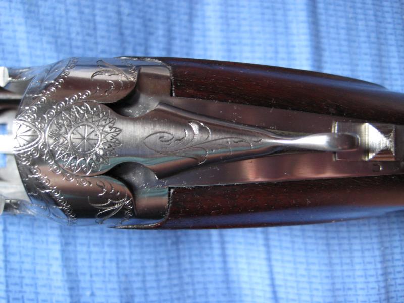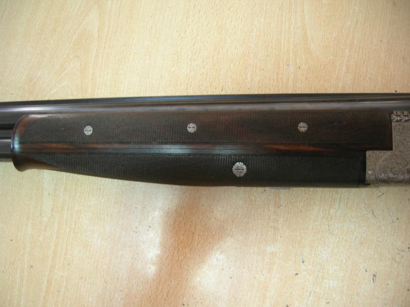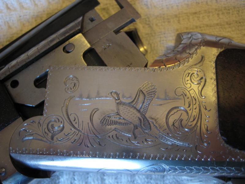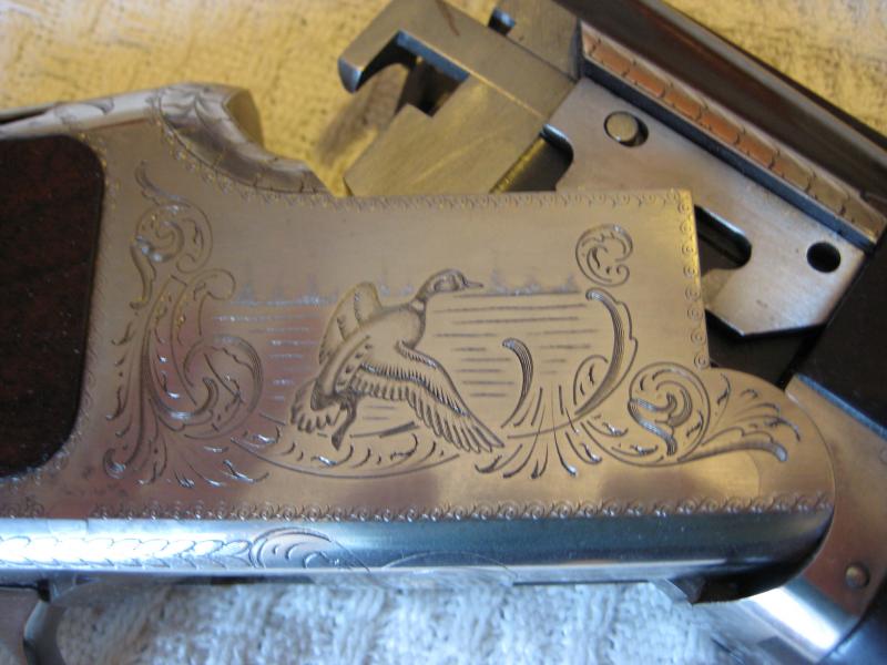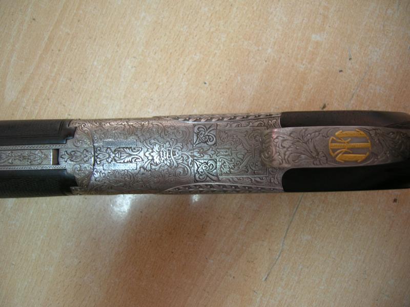 Esta escopeta que tienes está grabada a mano y la firma de su grabador esta puesta en la parte inferior derecha, según se ve en esta imagen que has puesto, no veo bien lo que pone, pero podría ser D.Matagne.