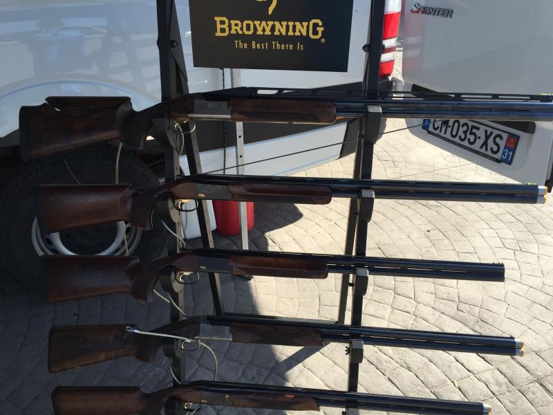 Efectivamente son de BROWNING Francia, el logo es " B725 ON TOUR" el hombre muy simpático me dejó encararme todas, además de prestar servicio técnico a las Browning, eso si unas tarifas bastante ajustadas en comparación con Perazzi.