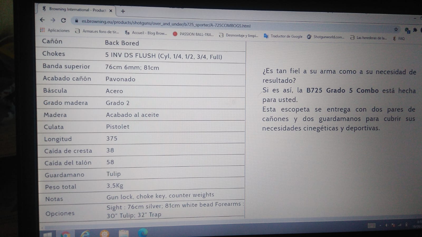 maino escribió:Hoy voy a tocar la 725 gr 5 sporter.Se la vi al campeón Extremeño Seve Calderon en facebook y paso datos de esta interesante browning.