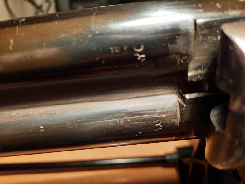 En otra foto se aprecia la marca del ánima, 16,3 en ambos cañones, pero no sé encontrar el diámetro de salida del cañón. No se si estas "Y" que se aprecian, una en cada sentido, puede representar algo...