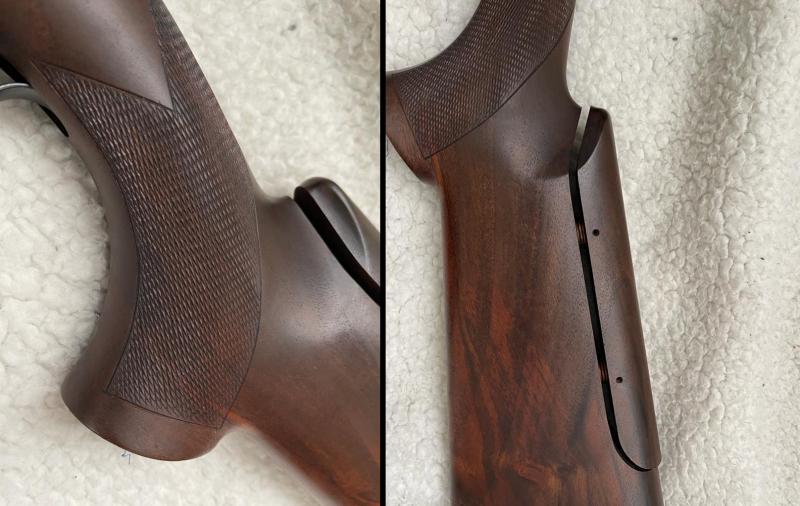 En esa ultima foto de la escopeta completa, me sigue pareciendo de zurdo, por el rebaje para el pulpejo del dedo pulgar izquierdo, y la forma de la carrillera, que si la apoyas en la mejilla derecha, ni siquiera tocaría contra la mejilla.