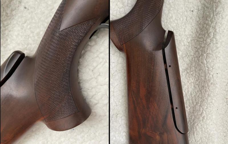 Por otra parte las escopetas superpuestas de competición/tiro suelen ser bastante rectas, casi igual tira con ellas un zurdo que un diestro, hay muy poca diferencia y de haberla un culatero en 10 minutos te la deja a tu medida eso no es lo que más me preocupa, si te hace una foto desde atrás la culata a los cañones enseguida se ve la inclinación, simplemente apoyándola en una mesa recta....