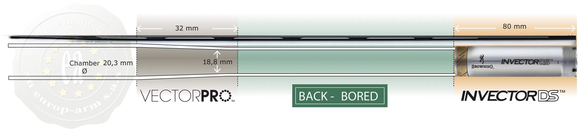 Este conocido sistema se complementa con un nuevo sistema implantado por primera vez en el modelo B625, me refiero al sistema VECTOR PRO que consiste en un alargamiento del cono entre la recamara y el ánima que repercute en un aumento de velocidad y penetración de la carga así como una disminución de la deformación de los perdigones, en las campañas publicitarias la compañía se esfuerza en hacer ver este sistema como una gran novedad cosa que dista bastante de ser cierta.