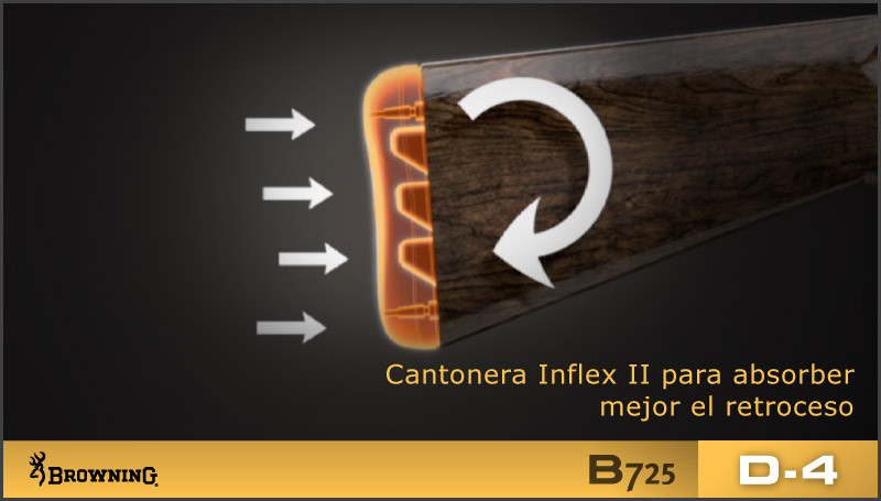 La cantonera de la B725 se denomina INFLEX II, este hecho es el resultado de la evolución del sistema inflex que fue introducido por primera vez en el modelo semiautomático Maxus, es por lo tanto la 2ª generación del mismo.