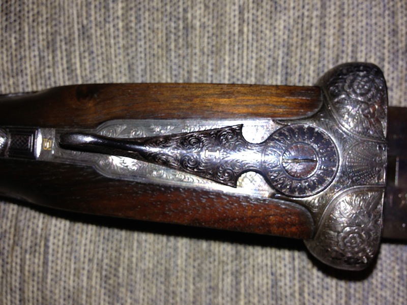 Son dos armas excepcionales que nunca me han dado un problema (salvo la tipica rotura de agujas), y que han bajado muchas perdices en ojeo. Son cilíndricas y cortas. Entre los cañones tienen el punzon de la letra P, por lo que como pude aprender ayer, son del año 1945. Esta fecha me cuadra perfectamente con mi suegro, que debió ser el único propietario de las escopetas.