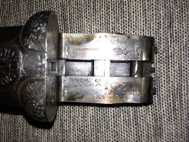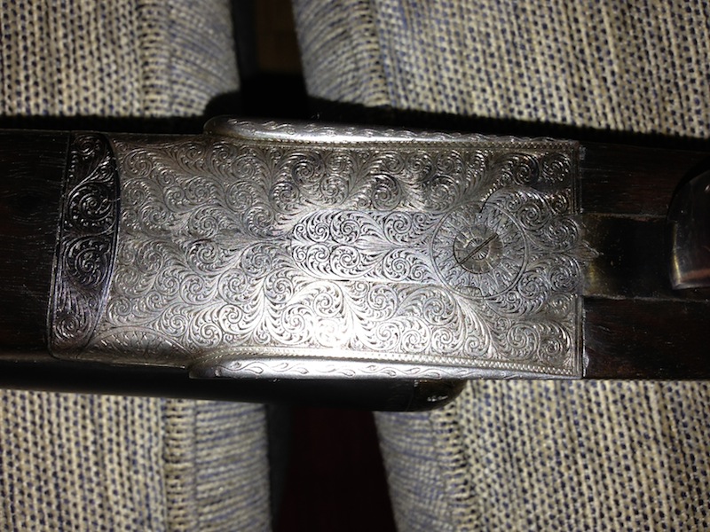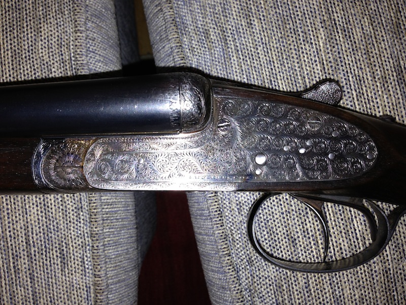 Son dos armas excepcionales que nunca me han dado un problema (salvo la tipica rotura de agujas), y que han bajado muchas perdices en ojeo. Son cilíndricas y cortas. Entre los cañones tienen el punzon de la letra P, por lo que como pude aprender ayer, son del año 1945. Esta fecha me cuadra perfectamente con mi suegro, que debió ser el único propietario de las escopetas.