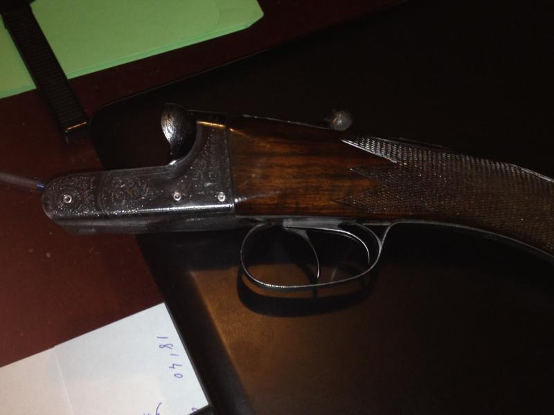 La escopeta efectivamente fue recamerada en Eibar, de 65 mm a 70 mm. La culata, la única información que tengo, es que fue cortada, y años después se la volvió a encolar, el mismo trozo que se corto, supongo que se se barnizo para que no se notara, y efectivamente aún sabiéndolo es muy difícil apreciarlo a simple vista, pues el veteado coincide perfectamente.