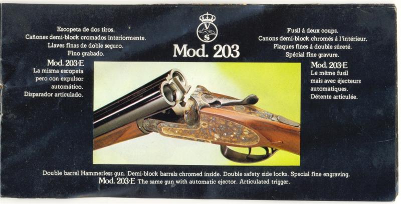 Imágenes de catálogos de época aproximada a la de la escopeta. El modelo es el 203 (203E si fuera expulsora). Anteriormente, también se hizo con triple cierre.