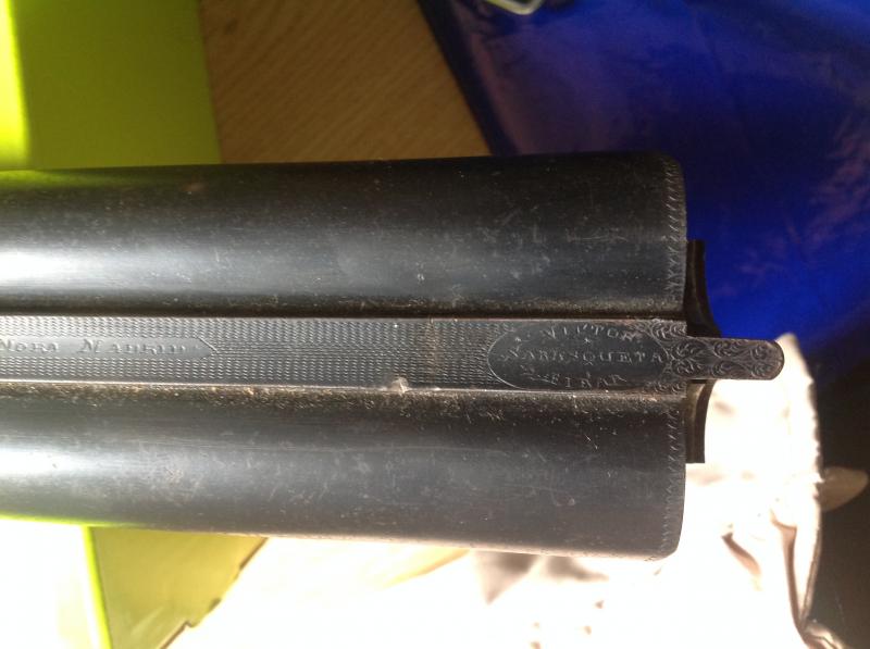 Buenas tardes a todos foreros. El caso es que pronto he necesitado vuestra ayuda, así que veamos si alguien puede echarme un cable. Me han regalado una Víctor SARASQUETA, y lo único que me han dicho es que puede ser de 1390 o más tarde, pero ningún dato de precisión. El mundo de las sarsquetas me supera, y más si se trata de tan antiguas.. He limpiado los cañones y parece que uno de los dos está bastante picado, tiene bastante uso, me dijo que habrá tirado más de 25000 cartuchos seguro. Les adjunto unas fotos de la escopeta y todas sus marcas por si alguien puede darme alguna información. Muchas gracias de antemano