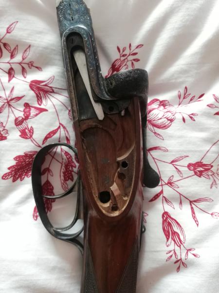 Bueno pues cañón derecho 10 décimas full y el izquierdo 13 décimas extra full. Longitud del cañón 67,5. Modelo creo que es el 126 con acabado dorado en las llaves. No está mal la escopetina por 86 euros en la subasta. Que cantonera le podrían ustedes.