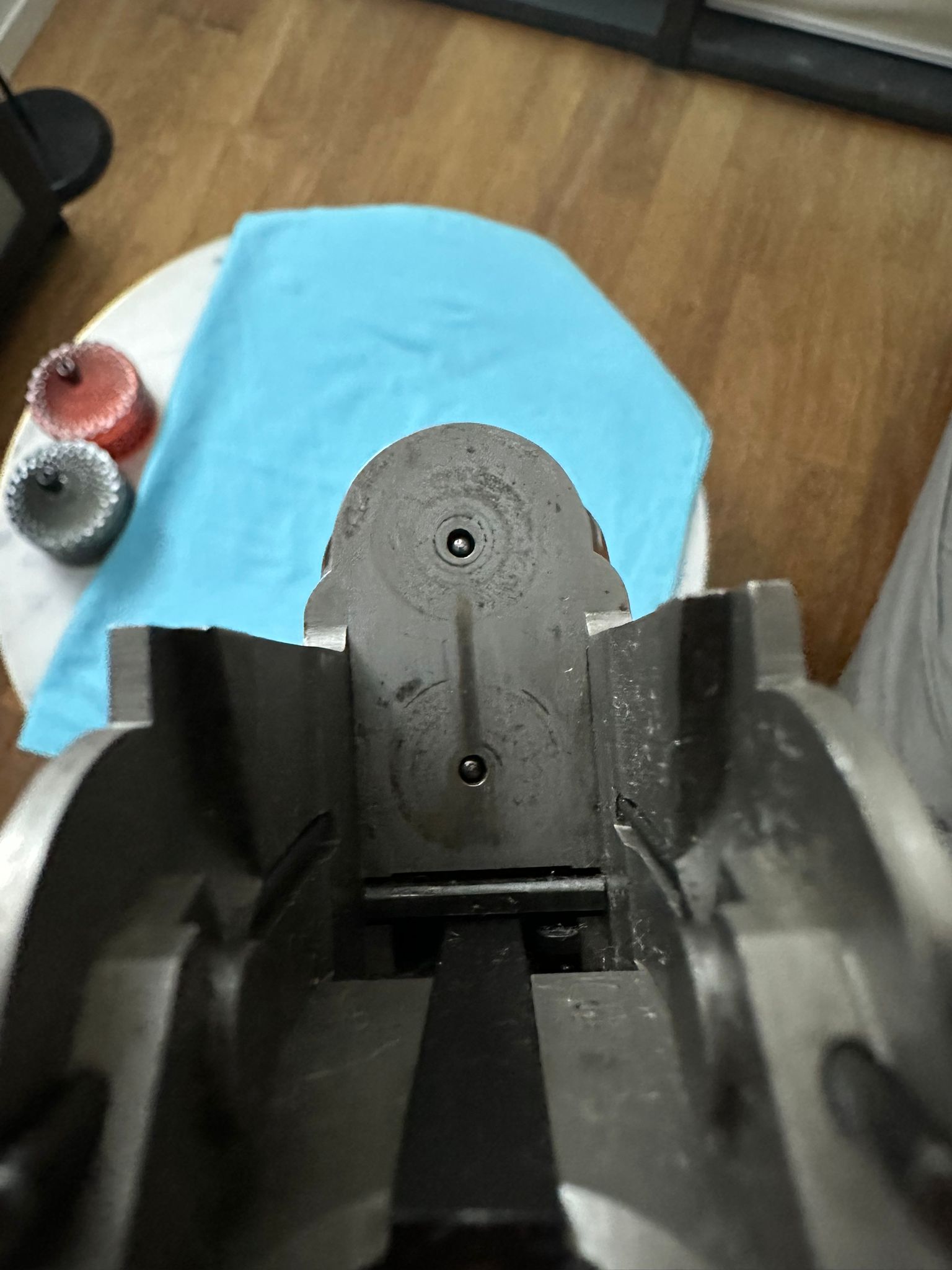Una es el plano de cierre. Parece que está muy recalcado ¿Es posible que el acero sea blando y los cartuchos se hayan dejado todas esas marcas del culote y el pistón?