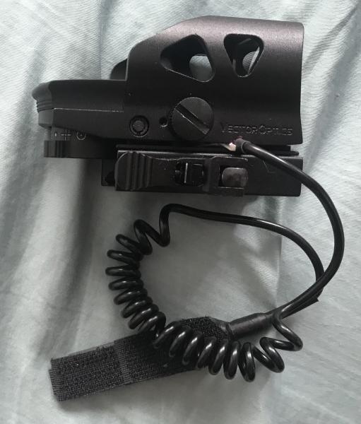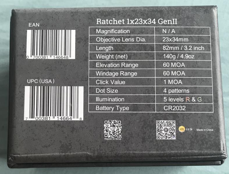 El Ratchet,es un visor de gama baja de Vector.La principal pega que le veo es que te va a obligar a elevar mucho el encare,consume bastante batería y lo del retroceso....