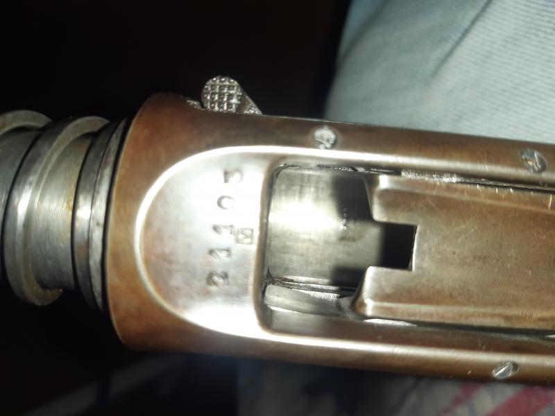 Menudo filón de información he encontrado en este hilo, es brutal. Hace poco he adquirido una FN Auto5 y estoy intentando saber el año de fabricación. He visto la indicación en la que decís que hay dos números pequeños y tal pero en la mía no aparecen o no sé interpretarlos. Os paso las fotos, viene en un maletín con dos cañones, uno liso 2* belgas (3* de las nuestras) y otro liso "balero" con alza y punto. En principio parece estar estar muy buen estado y tengo muchas ganas de usarla. Espero que podáis ayudarme. Mil gracias de antemano a todos.