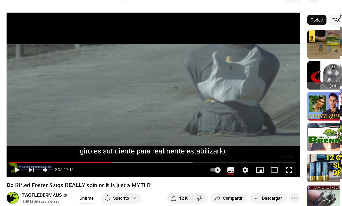 que es el giro suficiente para estabilizar la bala y se ve en el video como la bala gira