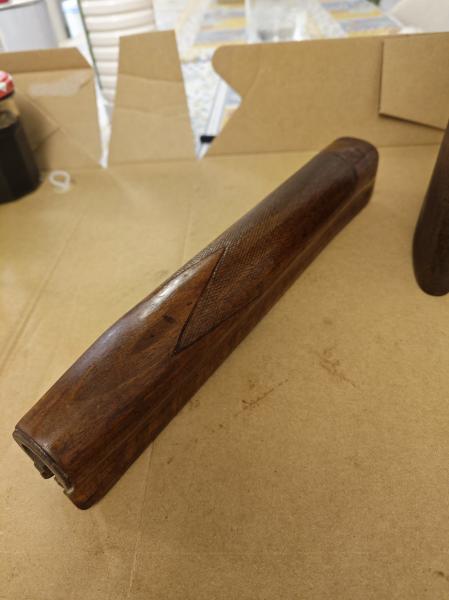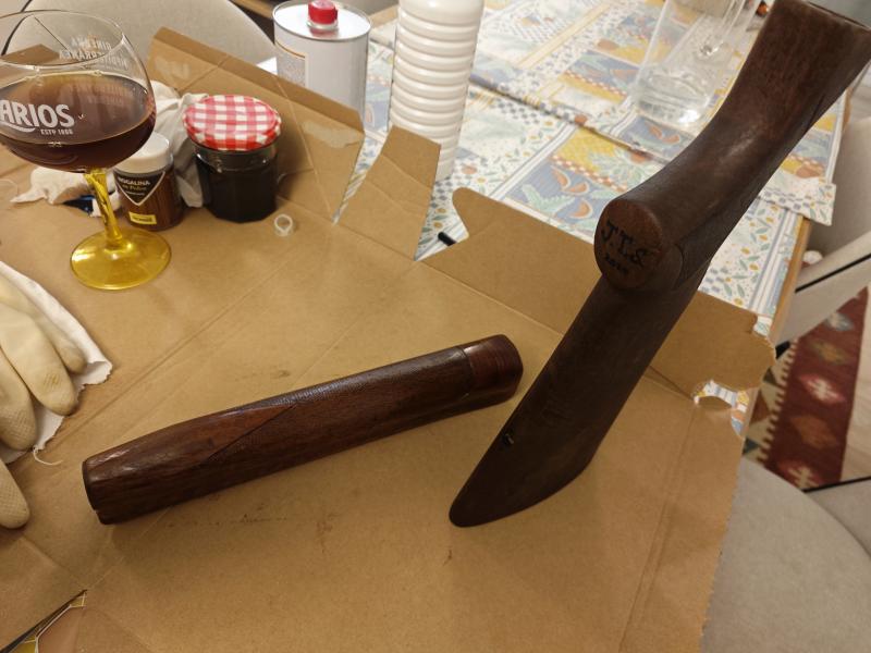 Hola compañeros, como bien sabéis el color de las maderas si hay dos tonos diferentes en el mismo arma nunca se iguala, da igual el tinte que le pongas, solo se puede disimular un poco, para mi los que nos metemos en estos berengenales muchas veces lo hacemos porque no sabemos lo que lleva tanto de trabajo como de paciencia, ahora si cumples con los dos requisitos el resultado puede ser muy bueno, prefiero el aceite pero el barniz es mucho mas fácil de acabar y no es tan delicado, sacar lustre al aceite solo se consigue después de un larrrrrgo proceso, aun así no todas las terminaciones quedan igual la madera es la que manda.