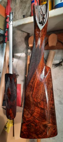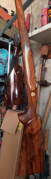 Las fotos que pongo, de una escopeta el antes y después de 35 manos de aceite y otros tantos lijados y pulidos .... tres meses y medio, las del rifle 30 manos en el mismo tiempo.