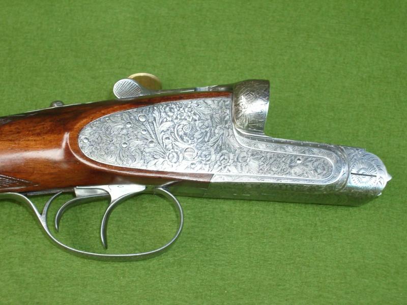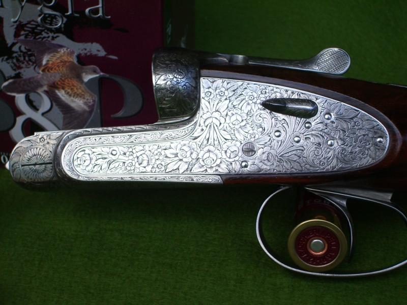Aquí os presento una finísima AYA 53 de 1947 (los primeros años de la marca). Nº de serie 764. El grabado es un ejemplo de laboriosidad y delicadeza dificil de encontrar en escopetas actuales. Nada que ver con el modelo 53 posterior. Lleva la correa retractil oculta en la culata. Nada que envidiar a ninguna escopeta inglesa.