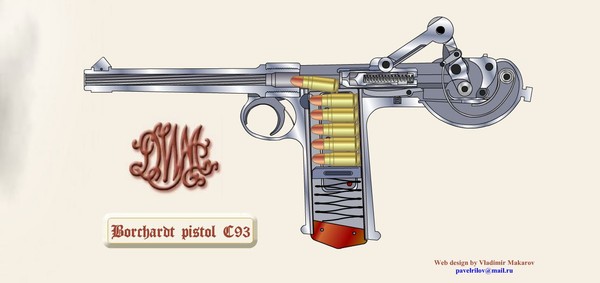 En 1893 el ingeniero alemán Hugo Borchardt se encuentra inmerso en el estudio de un arma de configuración individual y funcionamiento automático, fruto de su asociación con Ludwig Loewe nacerá la pistola automática C-93, esta pistola se basara en el sistema de la ametralladora Maxim y su acción se realiza con la inercia en un movimiento de palanca del obturador del cierre.