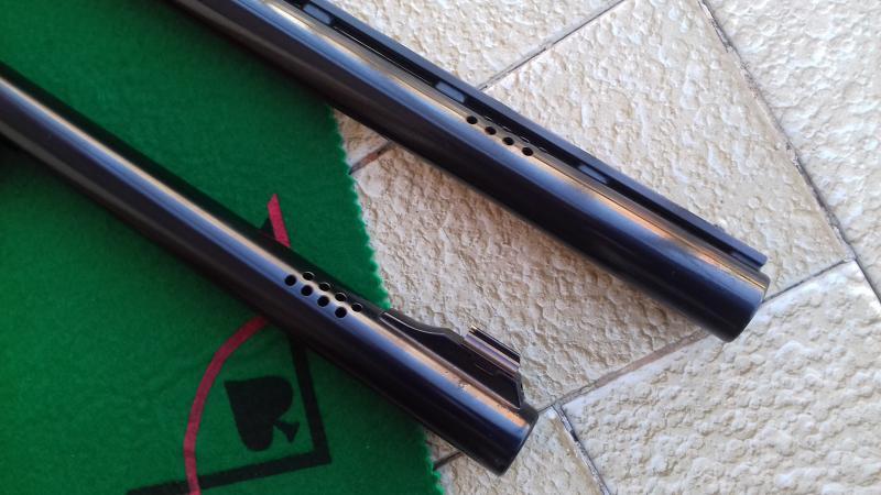 Por otro lado se ha adoptado la ruidosa técnica del proteado de los cañones, que es una técnica que mediante la perforación de los mismos en su parte anterior se consigue una disminución del retroceso estimado según marca en un 5%, bueno no diré que no, pero un 5% es difícilmente palpable para el tirador y el incremento del ruido sí que lo es os lo aseguro.