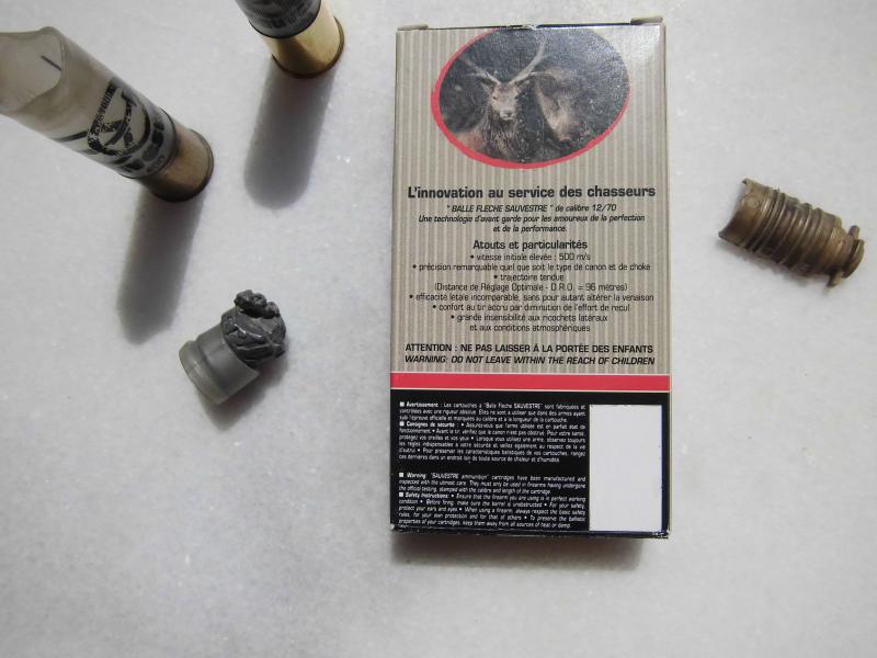 -Bala 12/70 con plomo, pero con una flecha creo que dice que mejorada segun su publicidad, pero da menos julios que la bala normal. https://www.sauvestre.com/Nouvel-article,1366?lang=fr