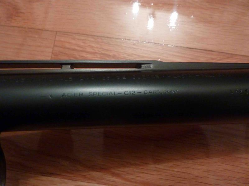 Estas series especiales son difíciles de datar, pero en este caso tenemos suerte, porque el cañón tiene la misma numeración que el resto del arma, no siempre es así, es el cañón el que nos dice por la letra del alfabeto griego “ P ” = “rho” que esta presente en el, que tu Auto-5 es de 1958 ya que esta letra corresponde a la prueba del banco de Liega de 1958, es pues esta la fecha de tu Auto-5, 1958.
