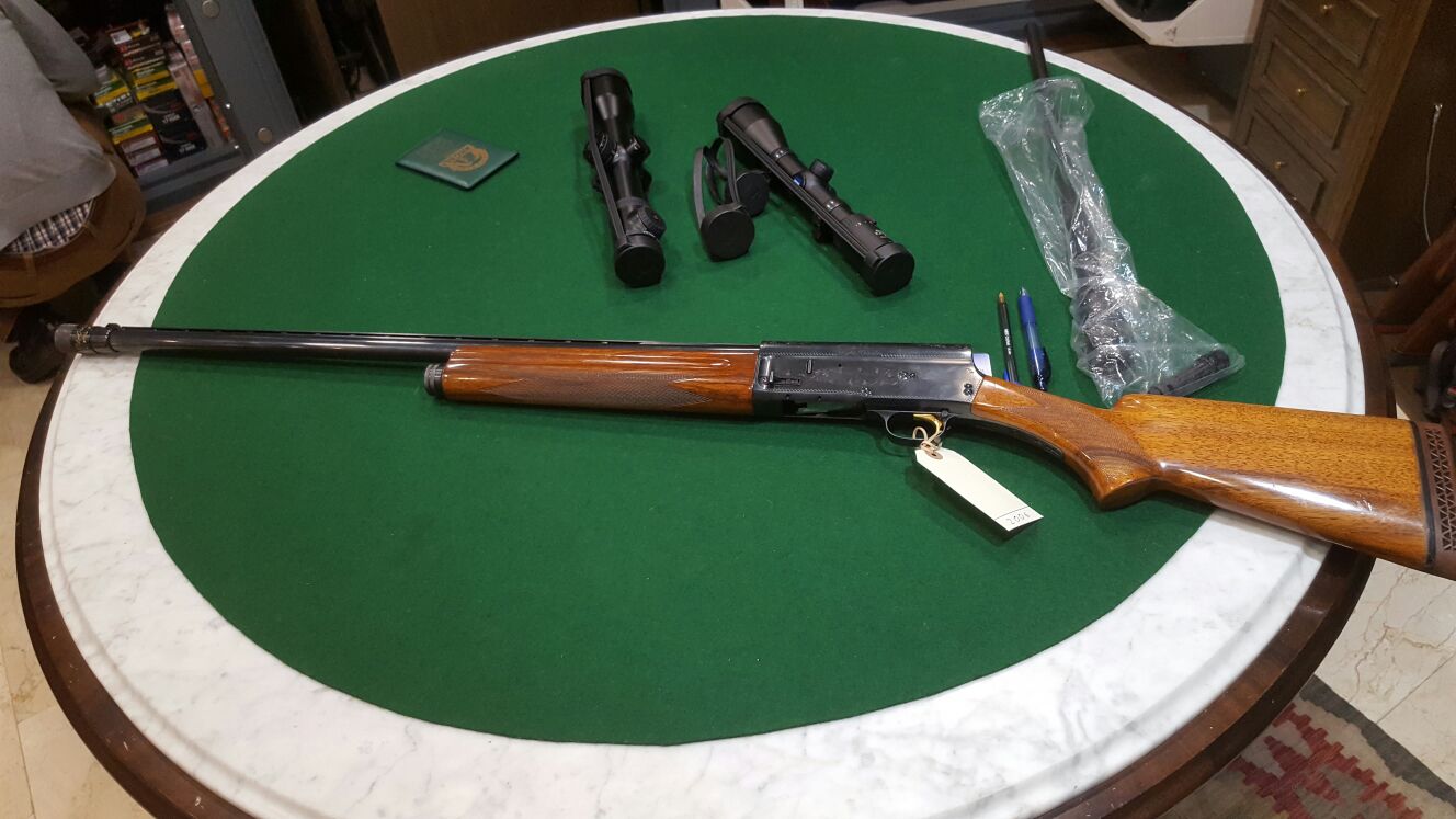 Brownsarda, no tendrás problemas si encuentras un cañón liso cilíndrico con miras de rifle, pues tus auto-5 son compatibles con la extensión de esos cañones, ya que utilizan el mismo sistema, en cuanto a la culata no te lo puedo asegurar al 100% pero creo que es de 55.