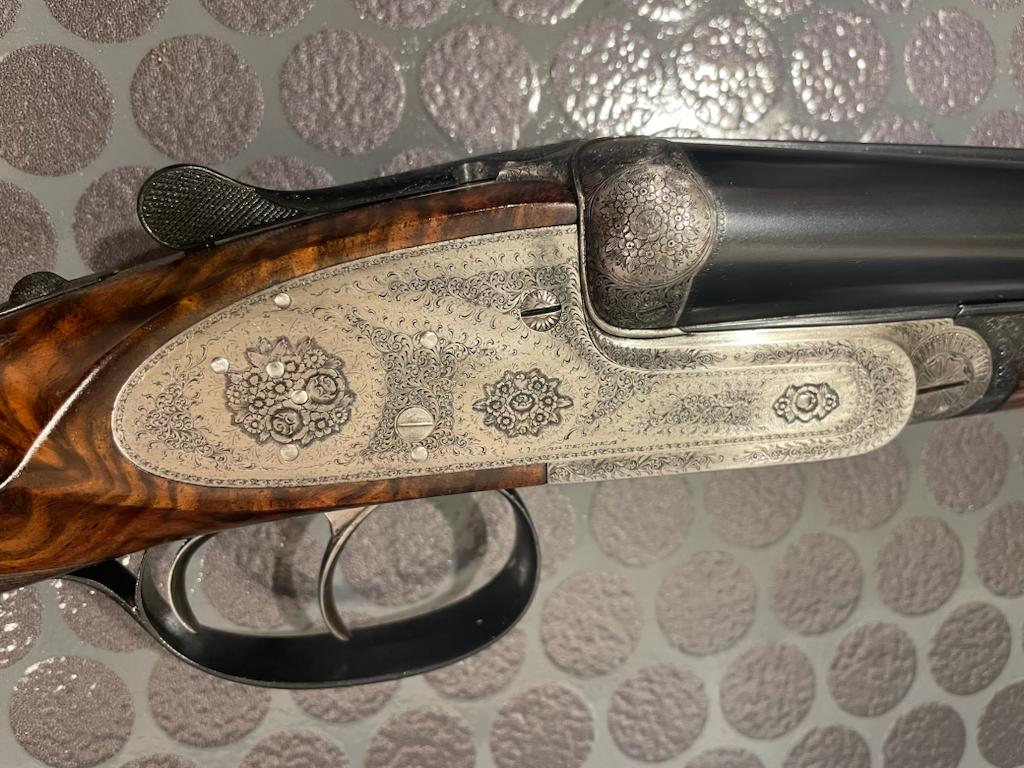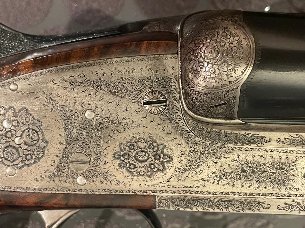 Gran escopeta de lo mejor o lo mejor para mi de la marca las llaves Beesley una chulería., solo dignas de armas de primera línea, maderas espectaculares, quedan muy pocas de ese modelo un conocido tiene una con dos juegos de cañones.
