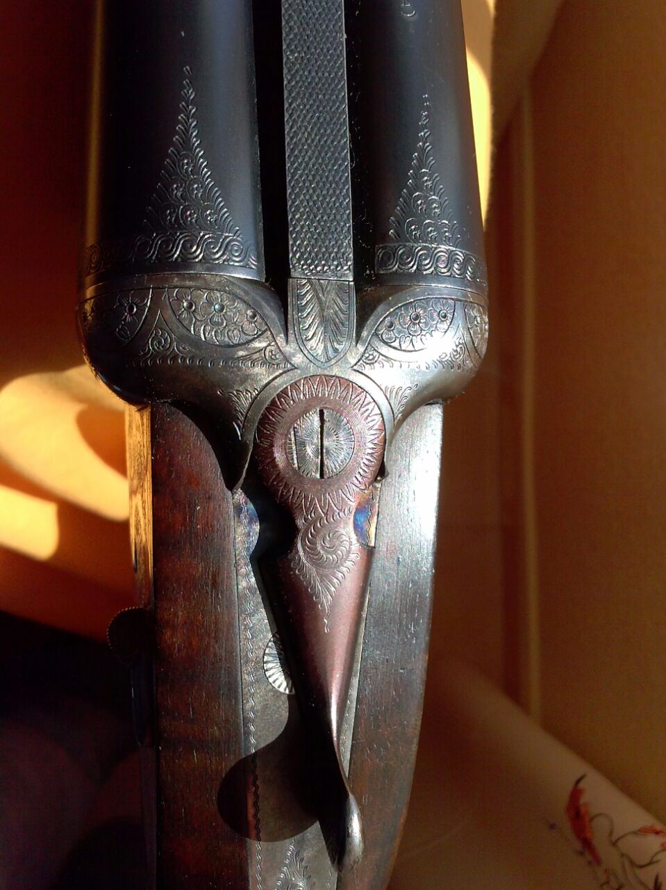Es una escopeta de gama media. Materiales de calidad aceptable, sin ser extraordinarios, tanto metales como maderas. Los grabados mecánicos de rodana que cumplen el efecto ornamental y nada más. Si para tí tiene algún valor sentimental, seguramente será mayor que el real. Te adjunto una imagen para que veas la diferencia con un grabado a mano del mismo "rose scroll".