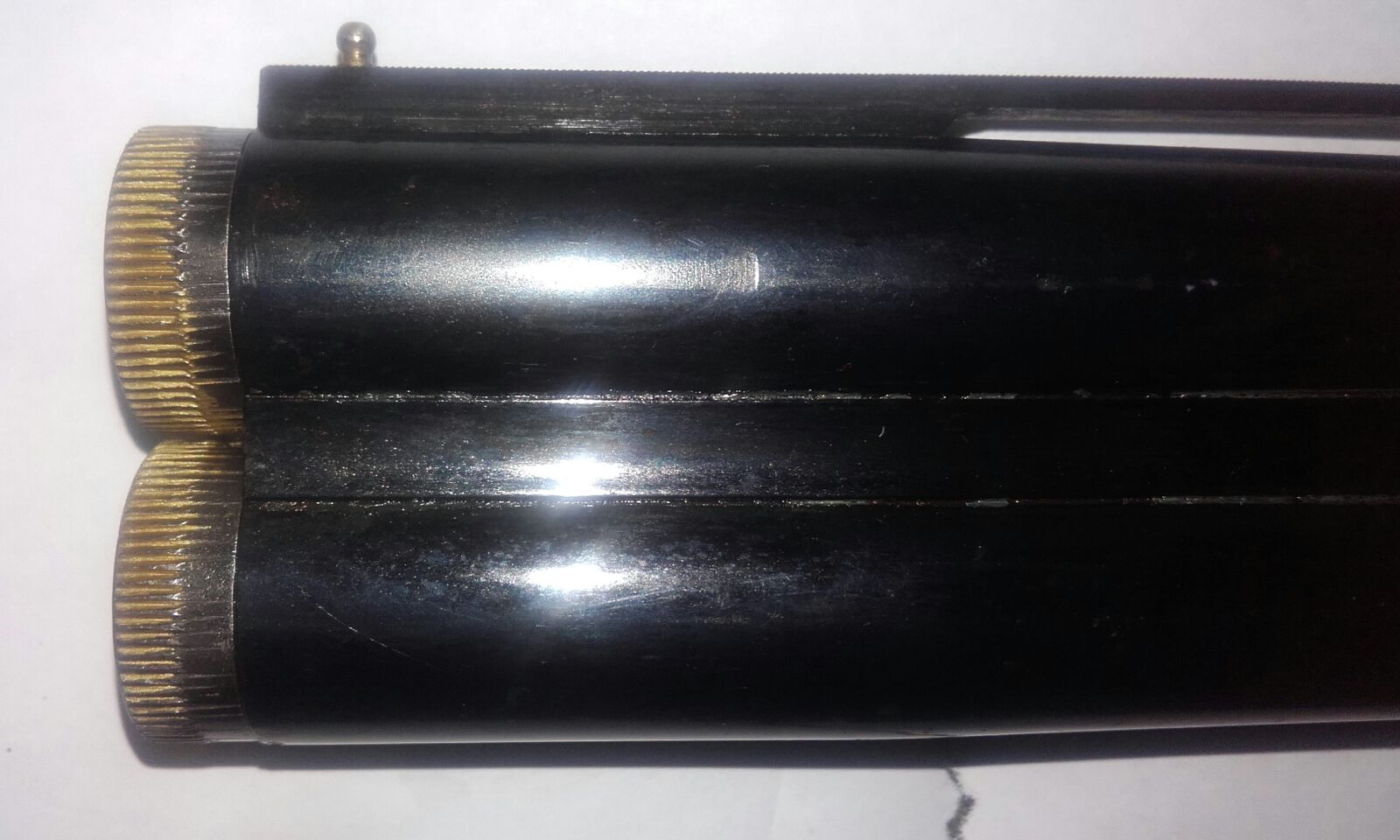 Mirando los números de serie, hay un numero de serie en la parte posterior de los cañones, y otro número de serie en la báscula de la escopeta(concretamente donde encajan los cañones).