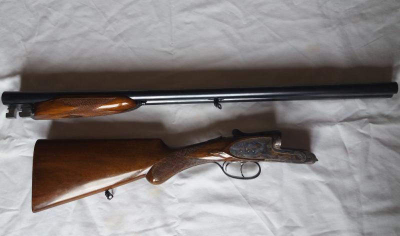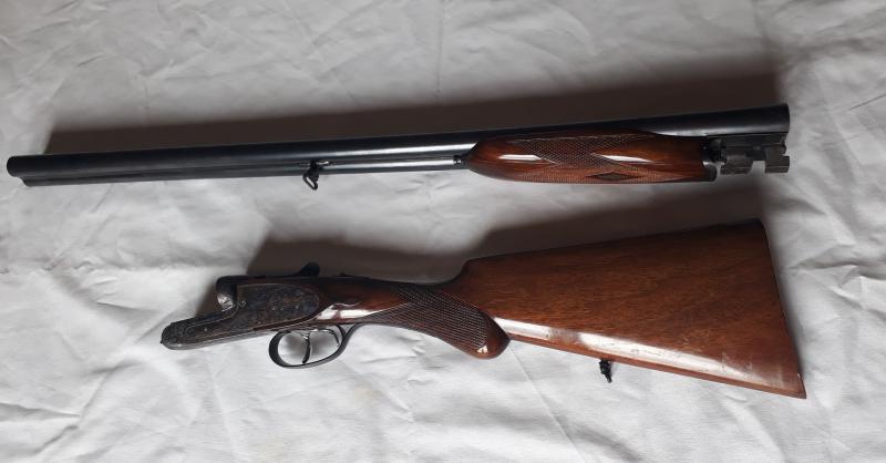 Victor Sarasqueta es una buena marca de paralelas pero como Aya y otras, tienen modelos de gama alta y gama media. Este en concreto no lo conozco, pero tiene lagrima en la culata, que suele ponerse en los modelos más finos, tiene la báscula grabada al jaspe, guardamanos cola de castor e indicador lateral de carga. Por cierto la escopeta está cargada y deberías dispararla para liberar el muelle y no agotarlo. No lleva cantonera de goma, que es como les gusta a los puristas de las paralelas. Todos estos detalles son de escopeta fina.