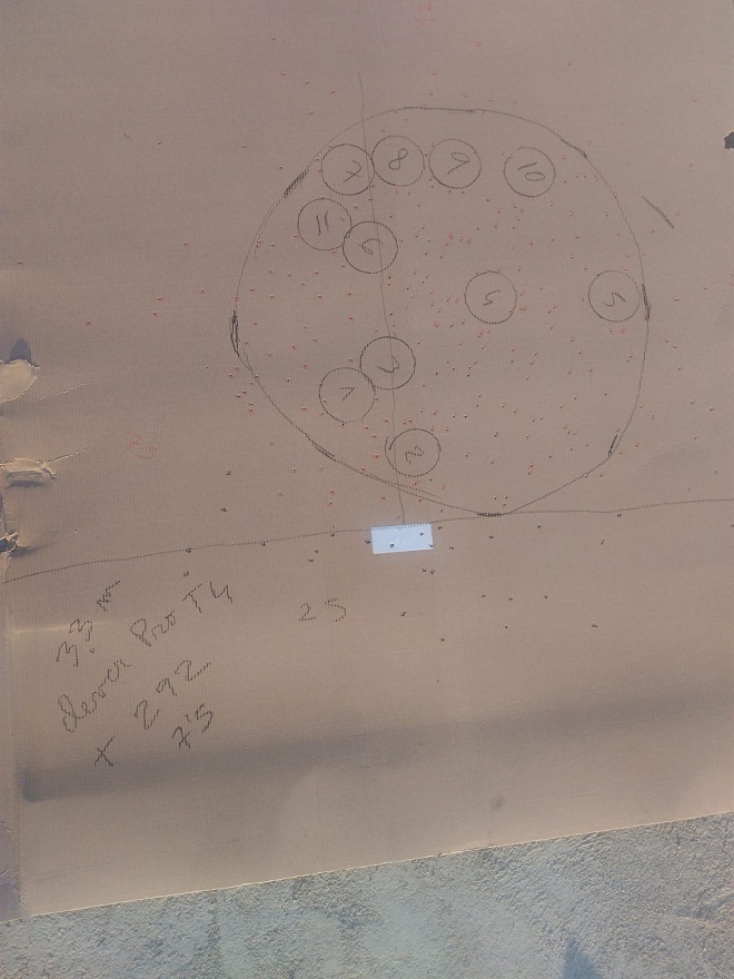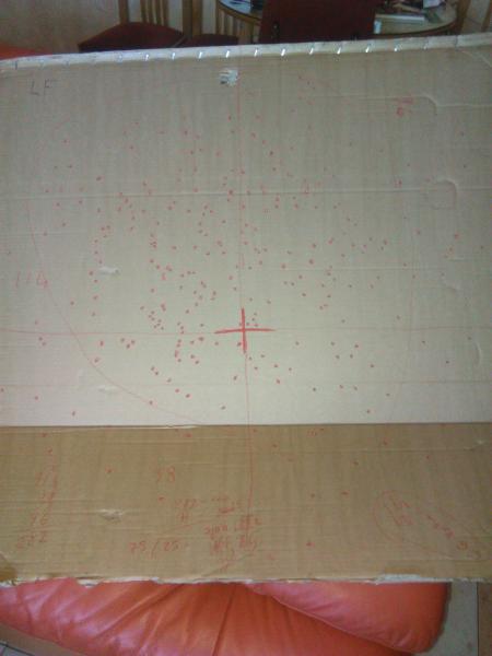 Tienes que hacer un circulo de 50 cm de diámetro , en el centro de la plomada es decir los 50 cm que mas perdigones han entrado.Se te puede ir un poco para la derecha o izquierda eso es debido a que te has movido un poco.