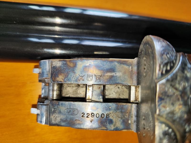 La VS se probaban, creo que a 850 kp/cm2, más tarde a 900 kp/cm2 y actualmente se hace a 1200 kp/cm2. Tu escopeta ha vuelto a pasar por el Banco Oficial de Eibar y ha sido retimbrada, con prueba 1200 kp/cm2, que no se ha hecho hasta hace pocos años.. Presenta un doble numeración, más moderna.