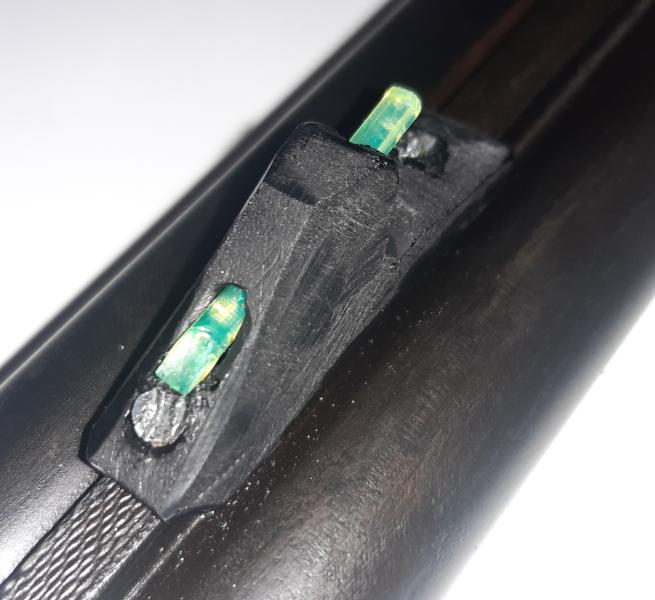 Lo estoy haciendo yo utilizando un plástico duro ( que no recuerdo el nombre, el que utilizan para hacer las tablas de cocina para cortar). Compré la fibra fluorescente en aliexpres. Es laborioso, sobretodo si no tienes herramientas adecuadas como es mi caso, pero creo que cumplirán su cometido. Antes hice un alza en aluminio y el punto de mira era la cabeza de un tornillo y daba en la diana