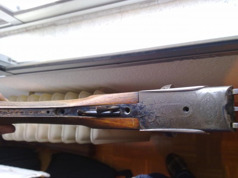 Ten en cuenta que esas escopetas llevan una varilla dentro de la madera de la culata que es la que hace que el seguro sea automático al accionar la palanca de apertura, esto te lo digo por que vaya a que se te caiga y luego no sepas donde va puesta. Esta varilla va desde un vaciado que hay en la parte delantera de la madera que es el que admite el retroceso del cerrojo de apertura hasta el bloque de seguro.