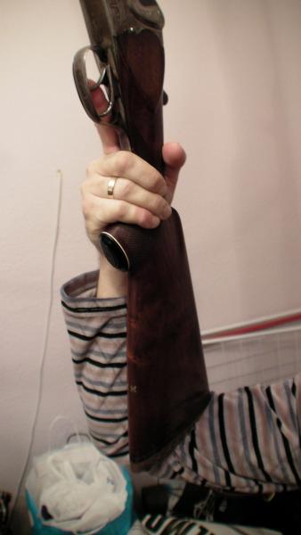 Con la cantonera actual, llego bien holgadamente e el guardamanos, el problema es que está hecha para un tío que tenía la mano mucho más grande, y deduzco que los dedos también mas largos que los míos, por lo que mi dedo indice, solo me llega con la yema a el gatillo de adelante, y depende de como le de, mas el culatazo, se me va el dedo al de detrás y me salen seguidos los dos tiros.
