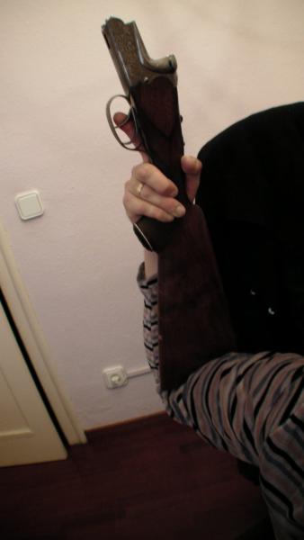 Creo que al menos la culata ya está rebajada una vez, por que lleva una goma de apoyo que no creo que AYA la pusiese en la original, mas que nada por que desentona con la calidad del resto de la escopeta.