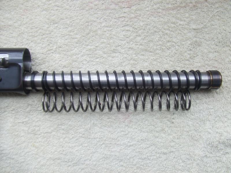 Esta gran fuerza ascendente que ejerce el muelle amortiguador es muy importante ya que es la necesaria para disminuir la fuerza del retroceso cuando disparamos, más fuerza equivale a más capacidad del muelle para amortiguar, por lo tanto si notamos poca fuerza será un síntoma claro de que su rendimiento no es el adecuado..
