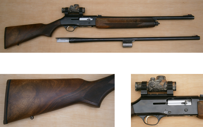 El modelo exacto de la escopeta es la Browning B80 SL, lleva choke fijo de 2 estrellas, y lleva un boton redondo en la parte izquierda de la carcasa.
