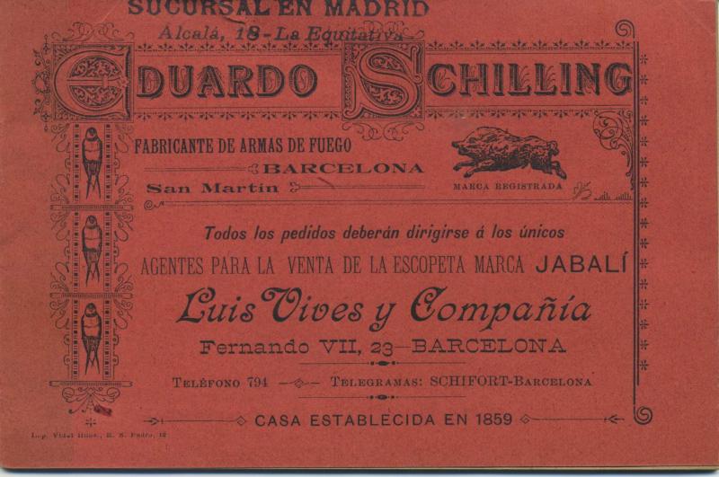 Si te pasas por casa, te dejo mis tomos del "Anuario General de España" de 1923, que salvé de ser quemados en una masía que dejaban sus inquilinos hacia 1984 : está lleno de propaganda de todos tipos, incluídas las armas y seguro que hay propaganda de Schilling & Paguagua.