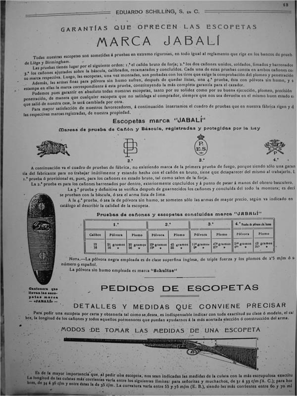 E.Schilling y P.Paguaga fueron distribuidores de las marcas Británicas, Purdey, Holland & Holland, Westley & Richards y Scot, como también las Belgas Lebeau Courally y Defourny en España y no solo de las mejores de sus escopetas no, sino que también de sus “best”.