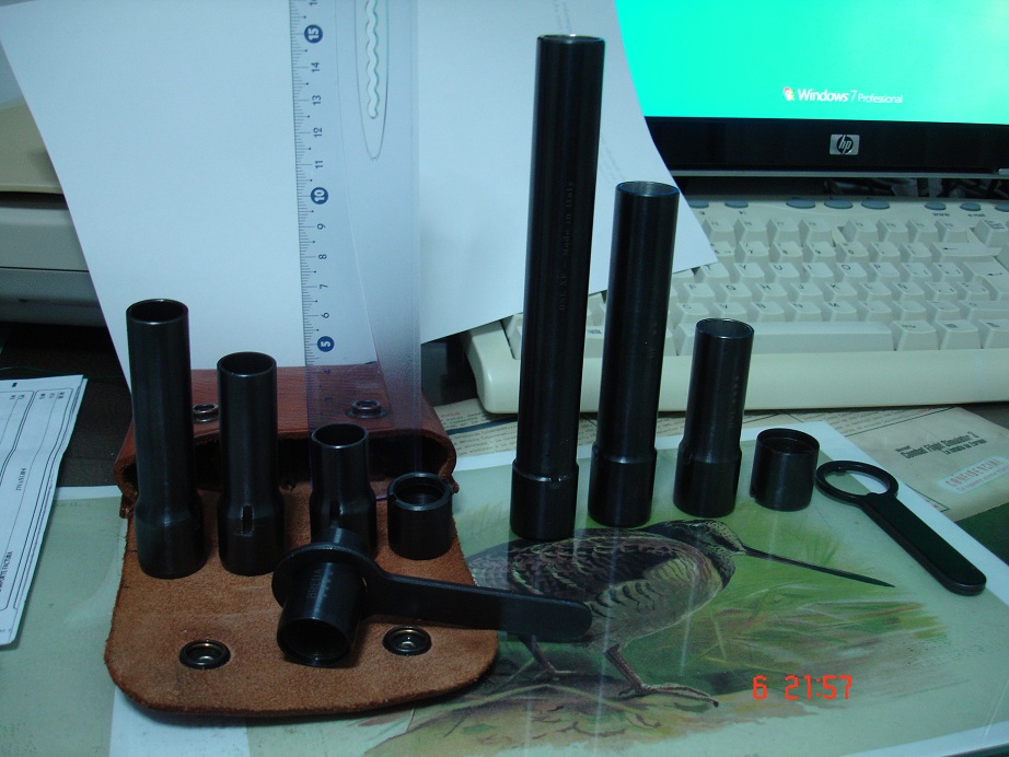 Como una imagen vale mas que mil palabras, te pongo el juego completo de chokes Benelli del 12, que eran del cañón que se me dobló, y los Breda de la del 20.