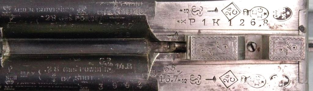 Esta escopeta del 24/65 del mismo fabricante tiene punzones muy similares. Lo que nos da la clave y demuestra que fue probada para pólvora sin humo está en los cañones.