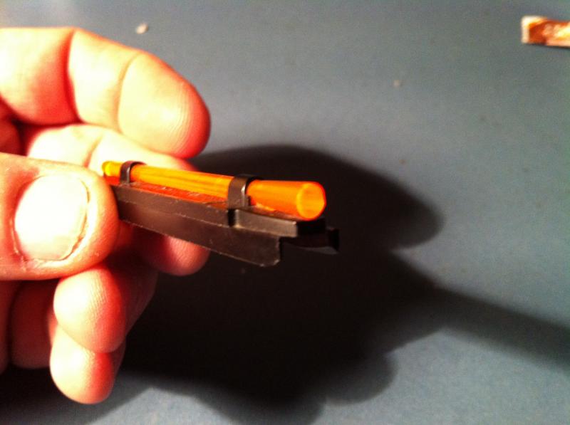 Este que lleva la Beretta terminaré poniéndoselo también a la paralela. Es pequeño pero de fibra óptica.