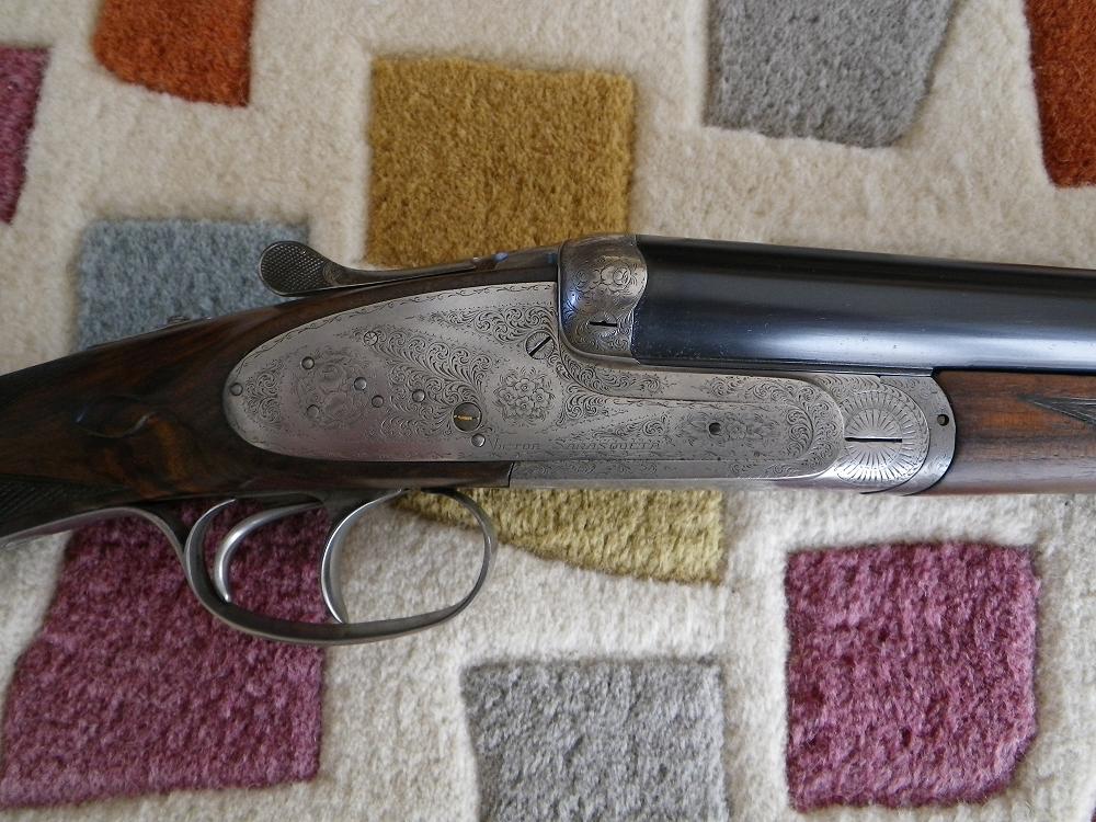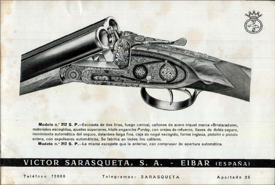 Preciosa escopeta y muy exclusiva. Victor Sarasqueta ofrecía la posibilidad de montar la apertura automática en alguno de sus modelos (211 y 212), lo que yo ignoraba era que aunque está basado en el compresor por muelle de Holland & Holland, fuera alojado en el pasamanos en lugar de en la parte inferior de los cañones. En el caso de la tuya, también lleva orejetas, que no aparecen en los modelos 211 ni 212 en los catálogos. El grabado de los coscorros, que es el único que se ve, parece de la 211. Por todo ello, parece tratarse de una escopeta hecha a gusto del cliente y totalmente exclusiva. El sistema de apertura, sí que pueda ser de patente propia, pues no lo había visto anteriormente en ninguna otra escopeta. Enhorabuena por ser propietario de esa joya.