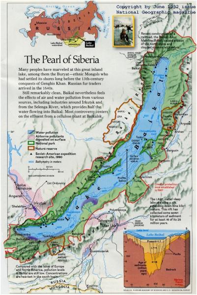 En el sur de Siberia se encuentra el lago Baikal, su nombre deriva del tártaro Bai-Kul, “lago rico” y también es conocido como el ojo azul de Siberia o la perla de Asia, con 31494 km² de superficie, 636 km de largo, 80 km de ancho y 1680 m de profundidad (reconocidos hasta el momento), el lago Baikal es el mayor de los lagos de agua dulce y el más profundo del mundo. Contiene 23600 km³ de agua, equivalente al 20% del agua dulce no congelada de todo el planeta.