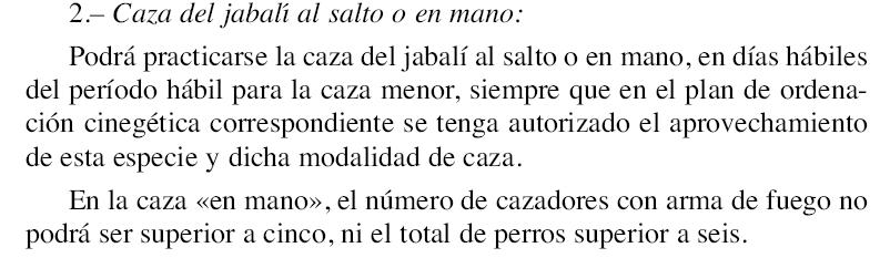 2. En los cotos privados se podrá ejercer la caza con escopeta de jabalí al salto o en mano, los