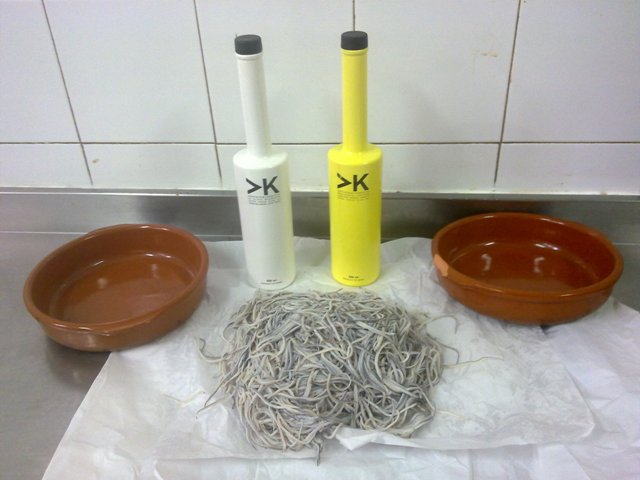 Lo más parecido que he visto últimamente a ese bicho fueron estos otros, un hermoso kilo de angulas que nos tapiñamos en la sociedad acompañadas de un cabrito asado en la panadería y tarta milhojas.